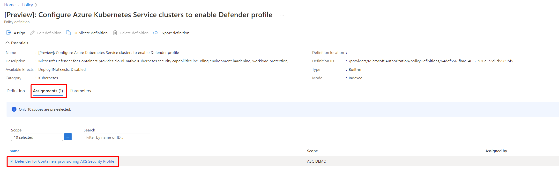 启用自动预配时,会自动分配默认工作区。 可以通过 Azure Policy 分配自定义工作区。