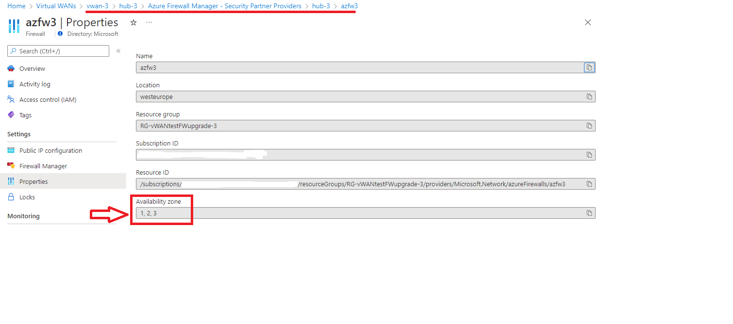 此过程会部署新的 Azure 防火墙。 在没有可用性区域的情况下,无法将现有 Azure 防火墙升级到具有可用性区域的防火墙。 必须先删除中心中的现有 Azure 防火墙,然后使用此过程再次创建它。