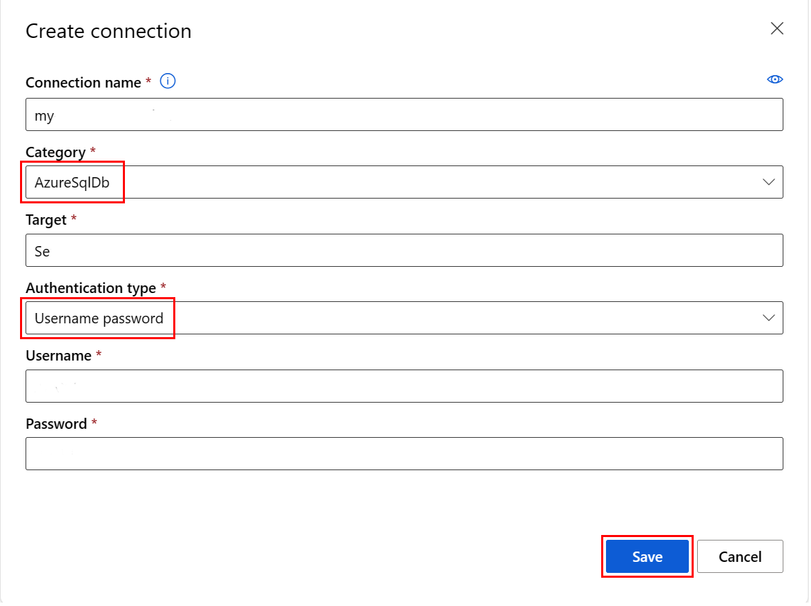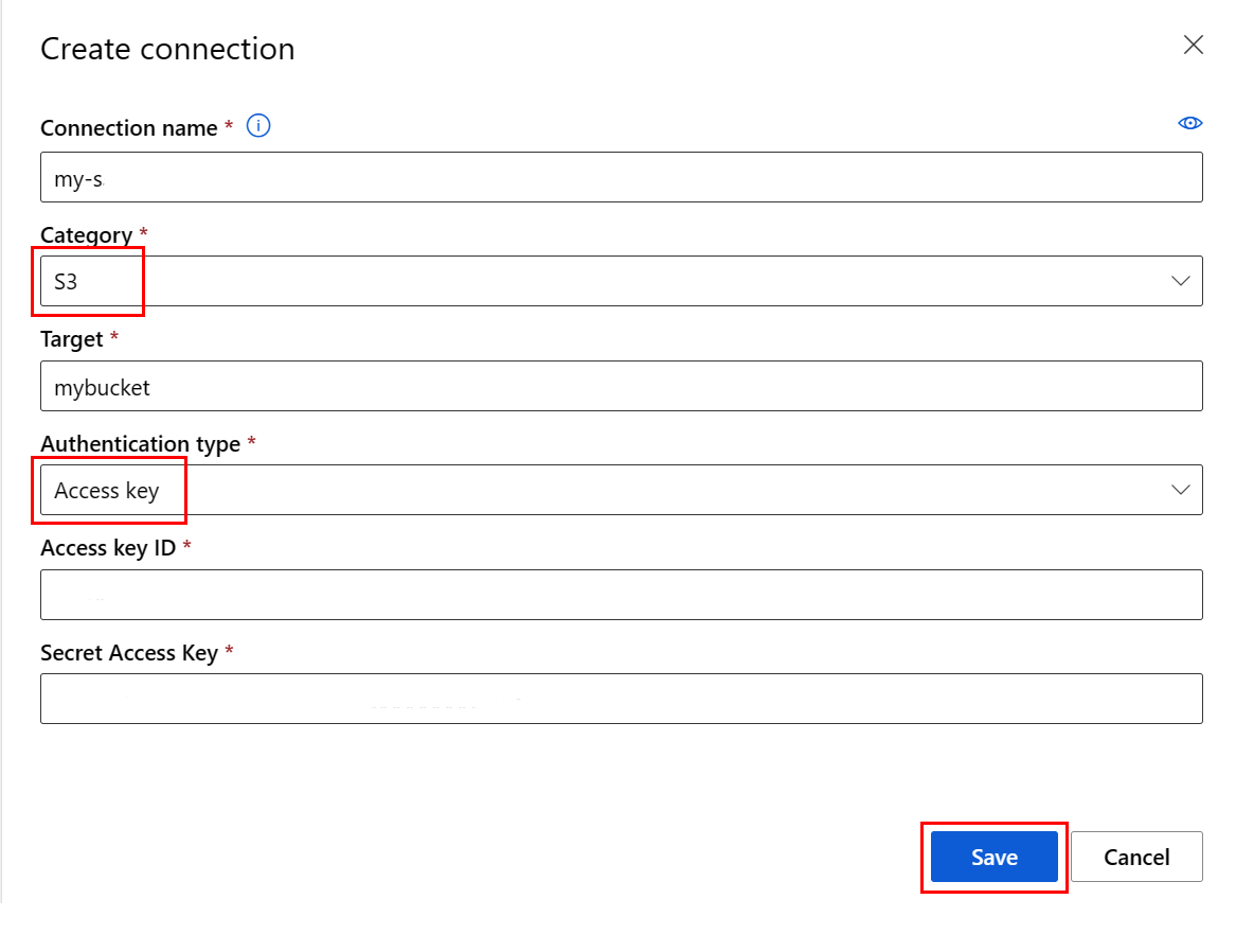 选择“保存”,将凭据安全地存储在与相关工作区关联的密钥保管库中。 运行数据导入作业时将使用此连接。