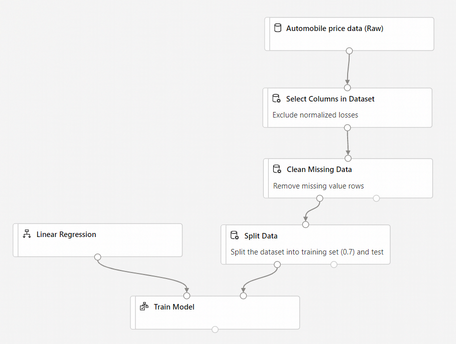 若要查看本教程的完整版本作为示例管道,请参阅 使用回归通过 Azure 机器学习设计器预测汽车价格。