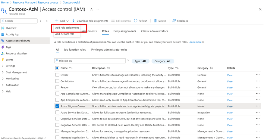 分配 Azure Migrate 所有者