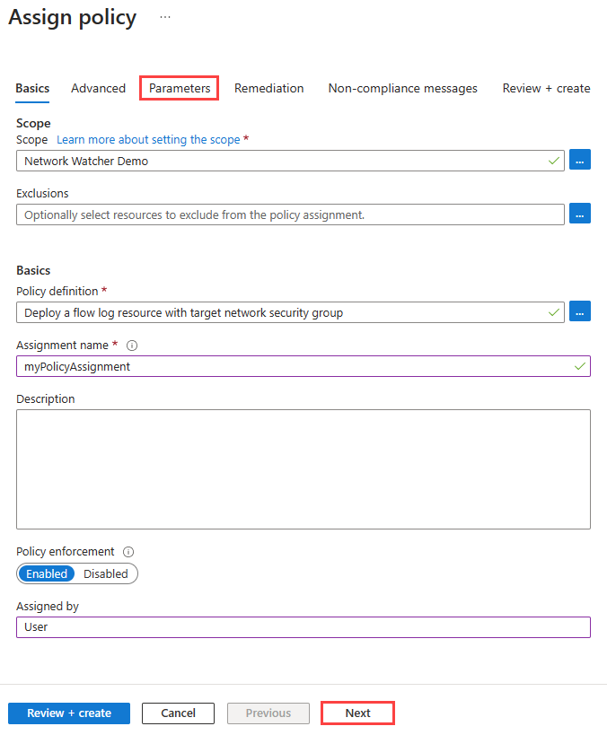 此策略不需要任何参数。 它也不包含任何角色定义,因此无需在“修正”选项卡中为托管标识创建角色分配。