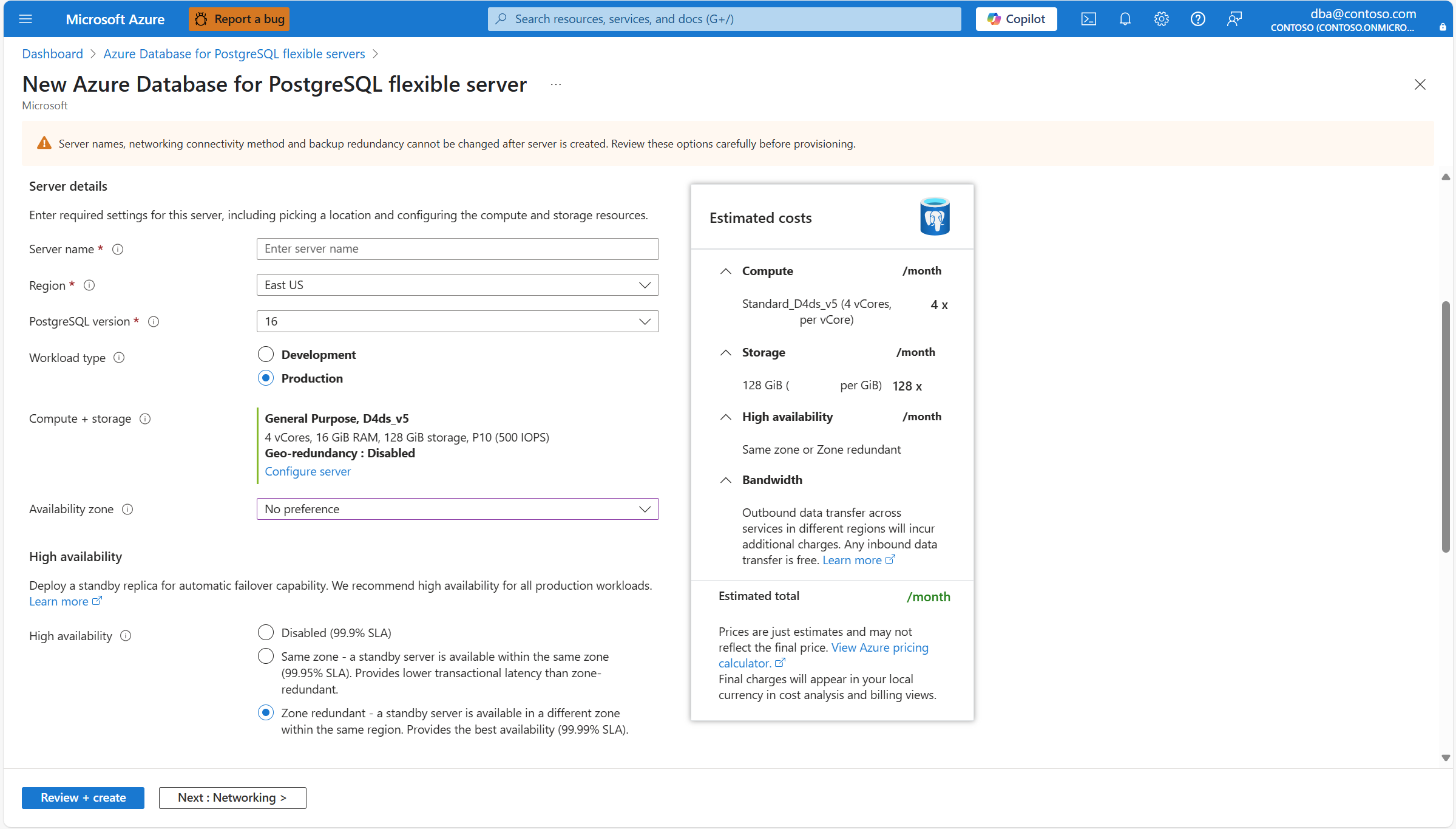 - 创建新服务器后, 启用具有区域冗余的高可用性。