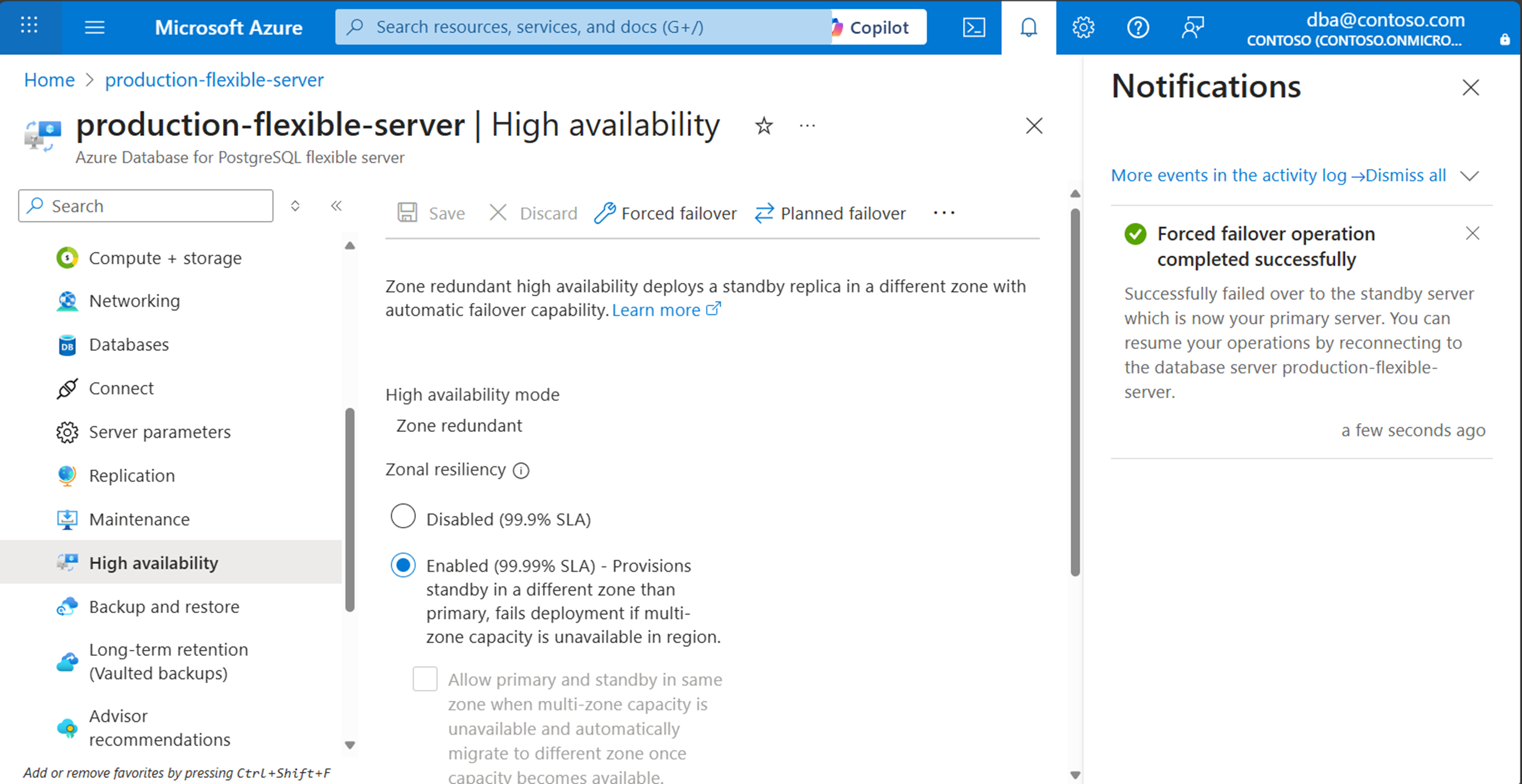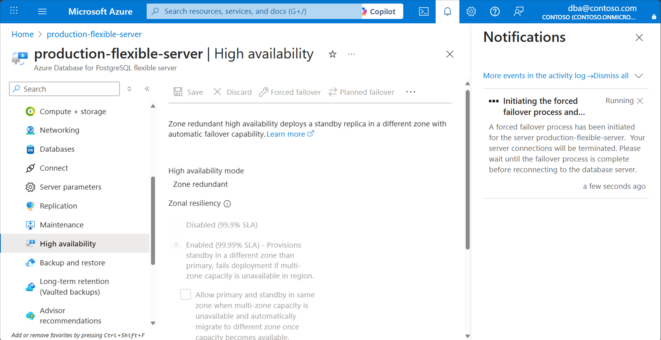 按照以下步骤执行从主服务器到 Azure Database for PostgreSQL 中的备用服务器的计划内故障转移。 启动此作会准备备用服务器,然后执行故障转移。