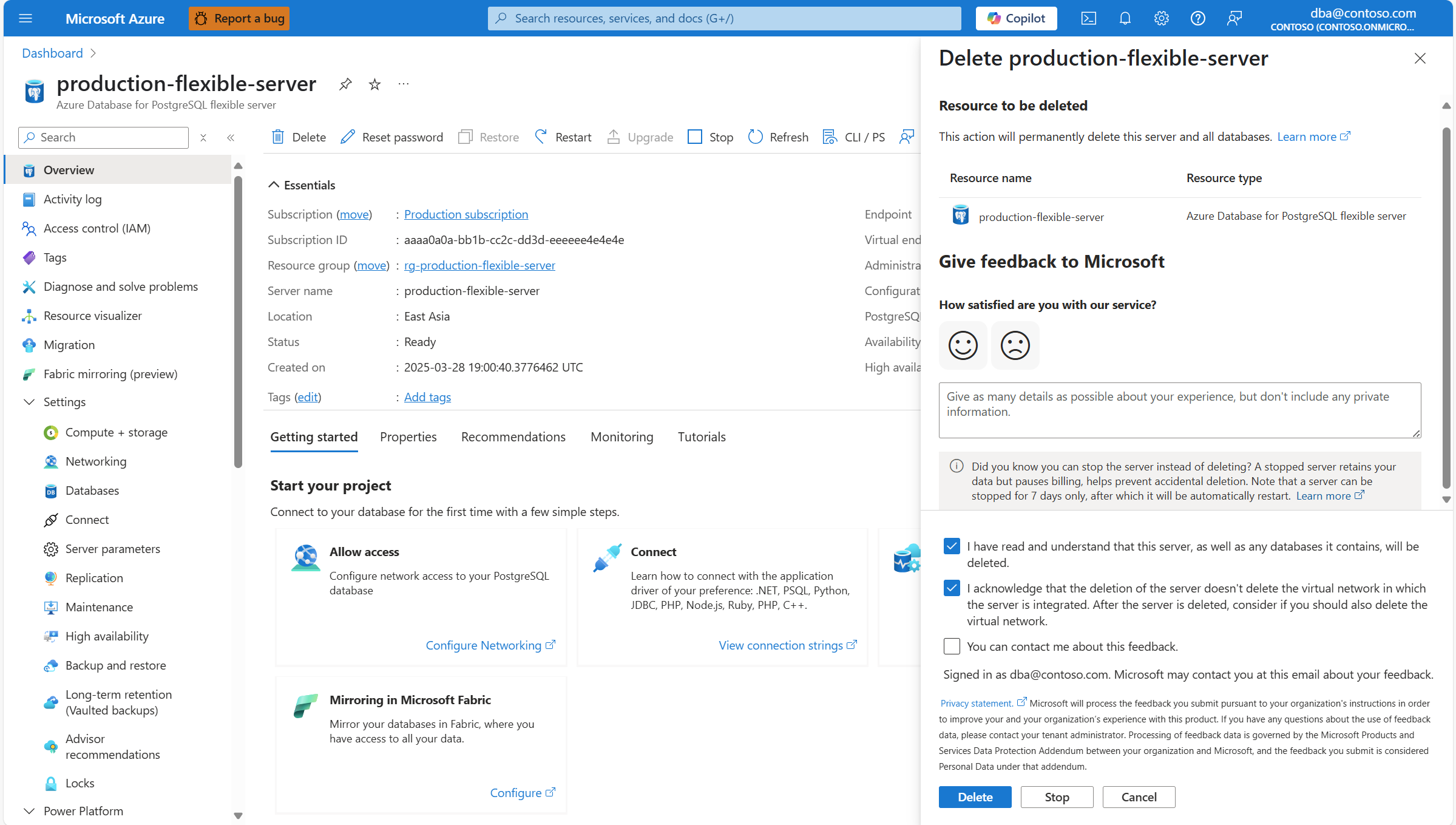 本文提供删除 Azure Database for PostgreSQL 灵活服务器实例的分步说明。