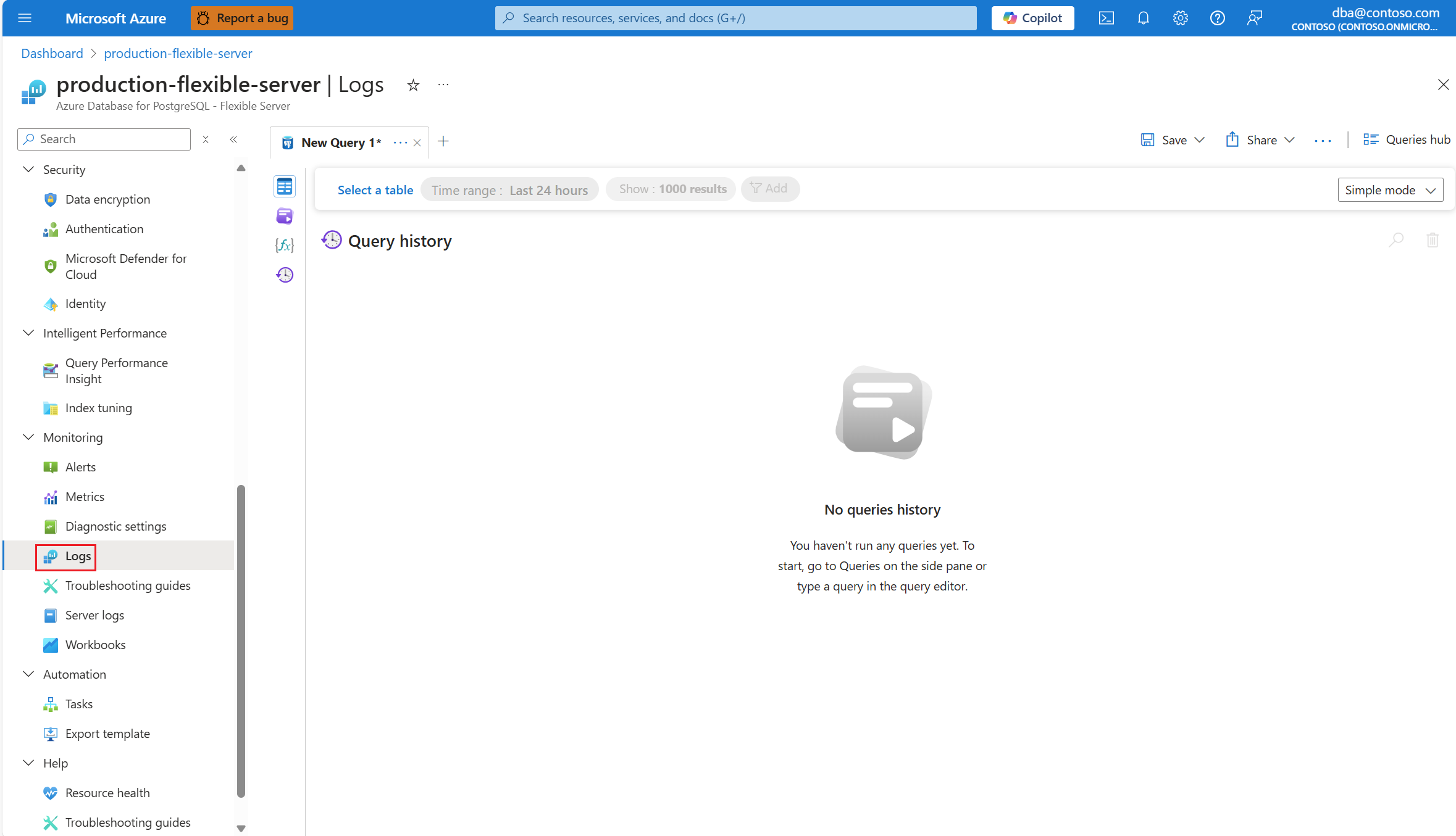 auto_explain扩展就会在日志中写入一个条目。 在资源菜单中的“监视”部分下,选择“日志”。选择 CPU 利用率达到 90% 的时间范围。