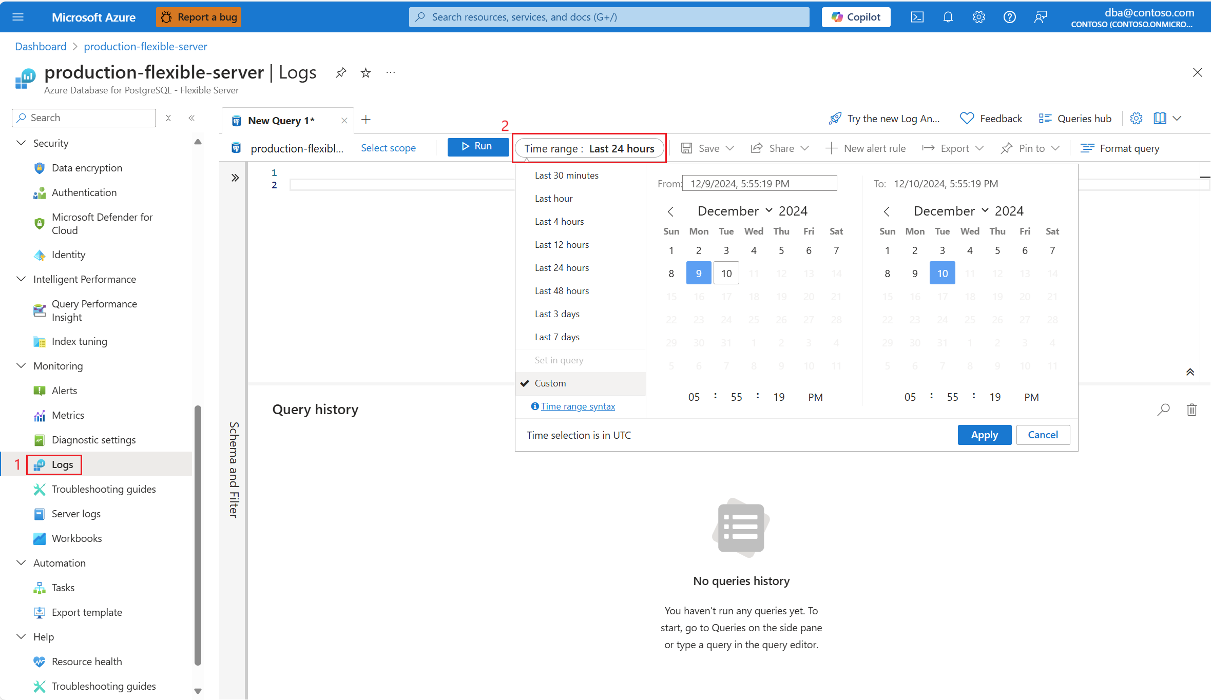 auto_explain扩展就会在日志中写入一个条目。 在资源菜单中的“监视”部分下,选择“日志”。 然后,在“时间范围:”中,选择要集中分析的时间窗口。