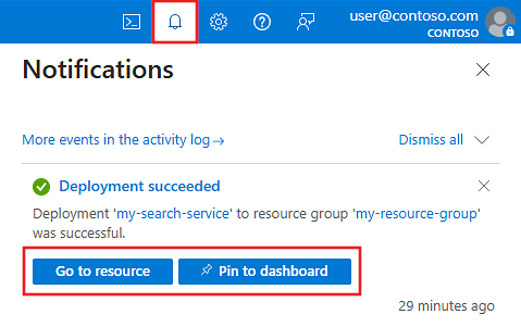 服务会在几分钟内部署,可以通过 Azure 通知监视其进度。 考虑将该服务固定到仪表板,以方便将来访问。