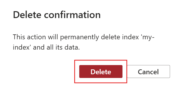 无法撤消索引删除。 在继续之前,请确保要从搜索服务中永久删除索引及其文档。