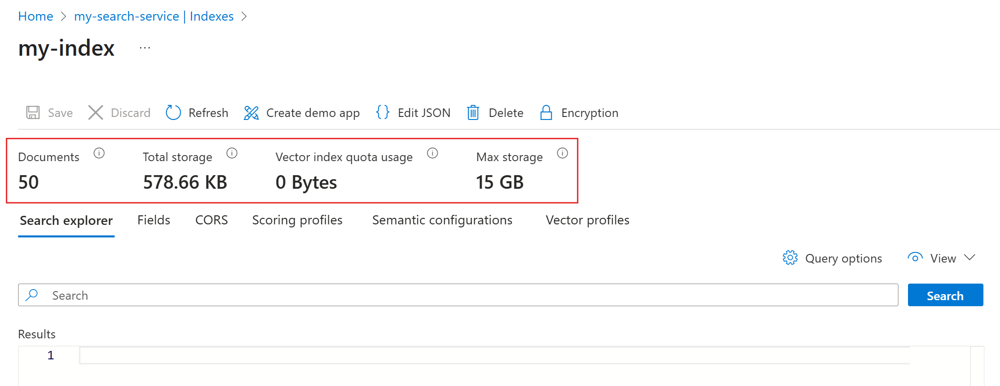 创建索引后,可以使用 Azure 门户访问其统计信息和定义,或将其从搜索服务中删除。