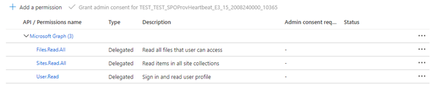 Delegated - Files.Read.All、Delegated - Sites.Read.All和Delegated - User.Read。搜索客户端可以使用委托的权限以当前用户的安全标识连接到 SharePoint。