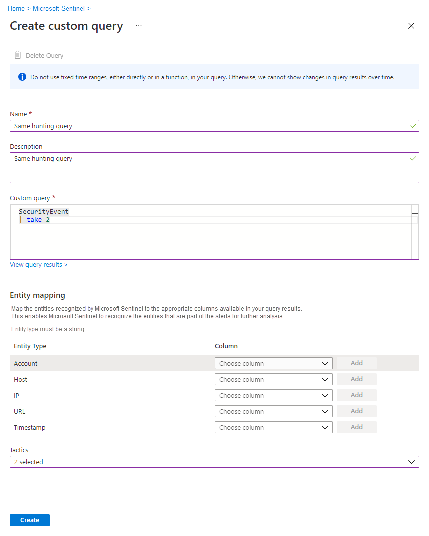 完成查询定义后,选择“创建”。