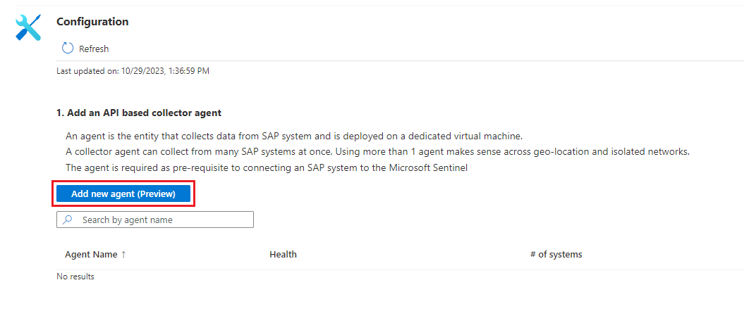此过程介绍如何使用 Azure 门户创建新代理并将其连接到 SAP 系统。 我们建议安全团队在 SAP BASIS 团队的帮助下执行此过程。