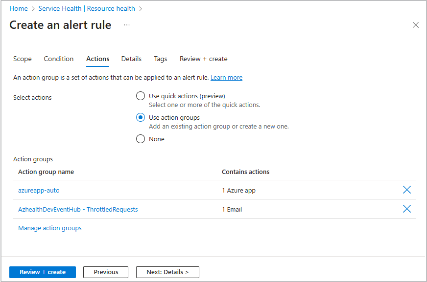 根据您的订阅,这里是您可以选择的所有可用操作组的列表。