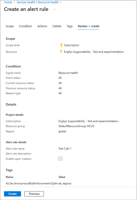 如果一切正常,请选择“ 创建 ”开始监视资源。