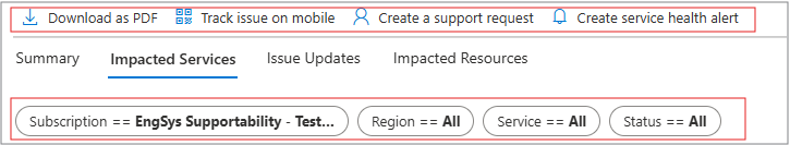 “受影响的服务”选项卡显示有关任何受影响的服务的信息。