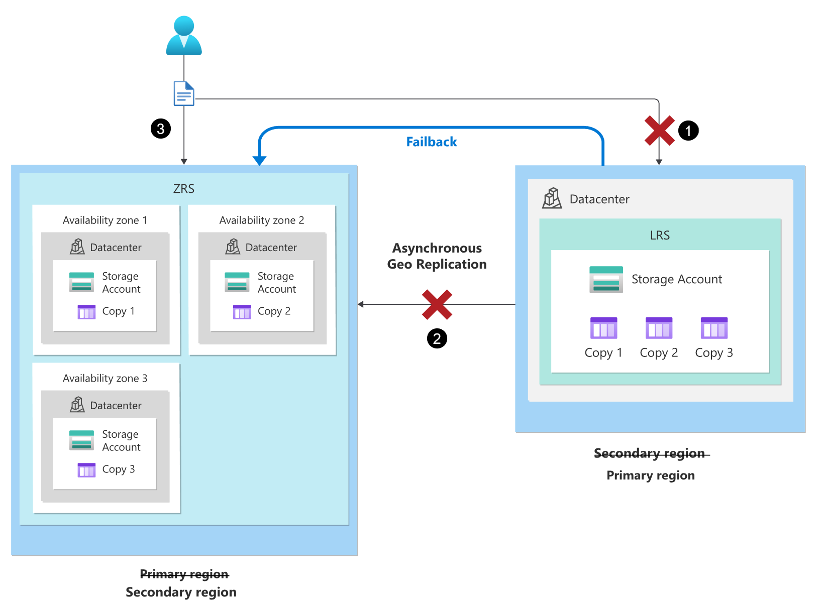 若要详细了解故障转移和故障回复过程中的各种冗余状态,请参阅 Azure 存储冗余 ,了解每个冗余的定义。