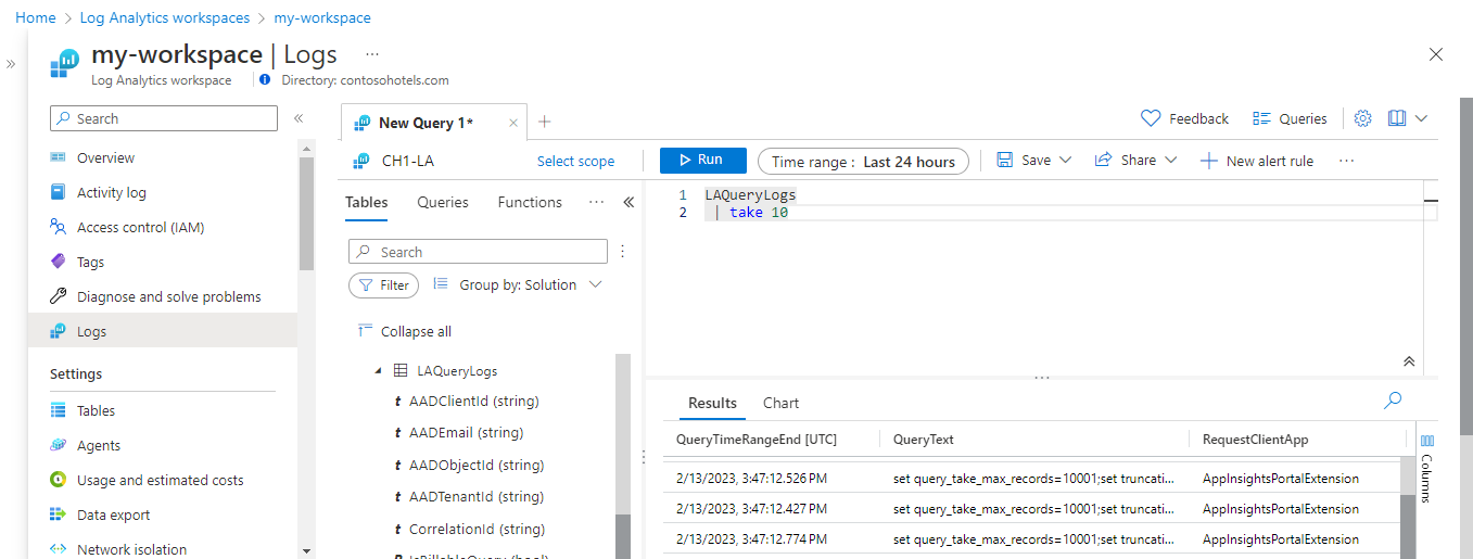 需要为你的工作区启用查询审核,以创建你将使用的LAQueryLogs