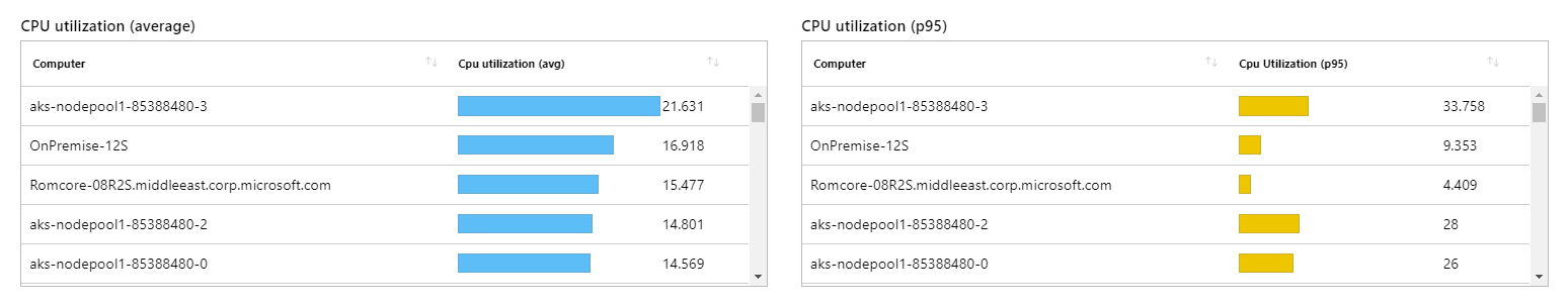 | summarize CpuAverage = avg(CounterValue), CpuP95 = percentile(CounterValue, 95) by Computer