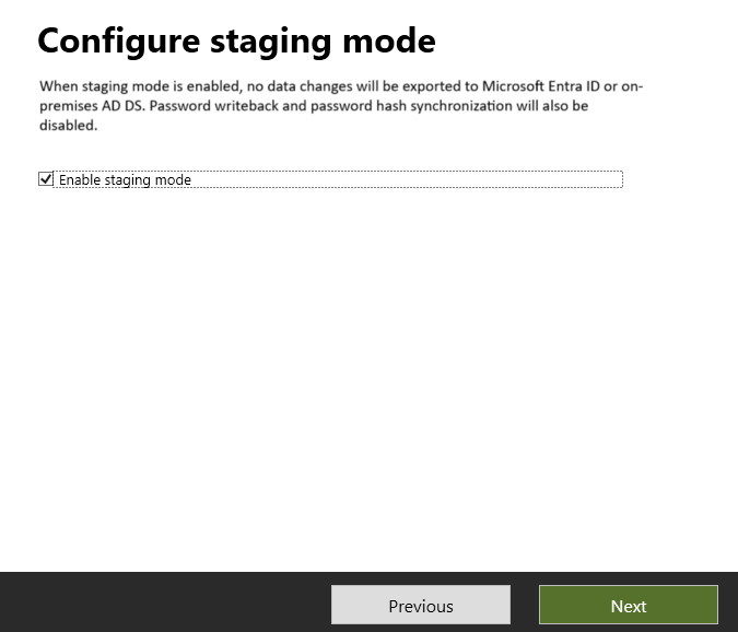 - 选择 “配置暂存模式 ”,然后选择“ 下一步”。