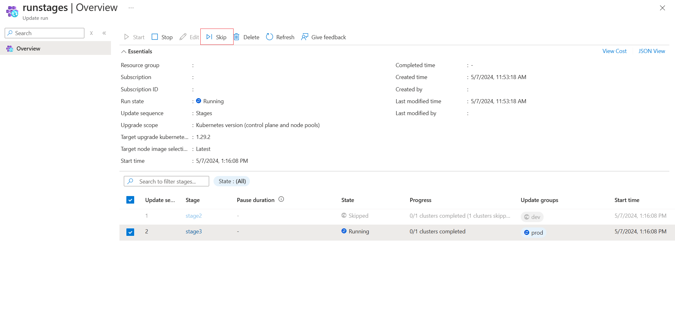 az fleet updaterun skip \