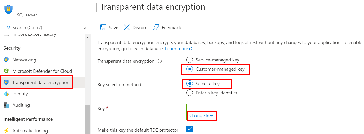 • 本操作指南假设已使用 Azure Key Vault 中的密钥作为 Azure SQL 数据库或 Azure Synapse Analytics 的 TDE 保护器。 请参阅提供 BYOK 支持的透明数据加密