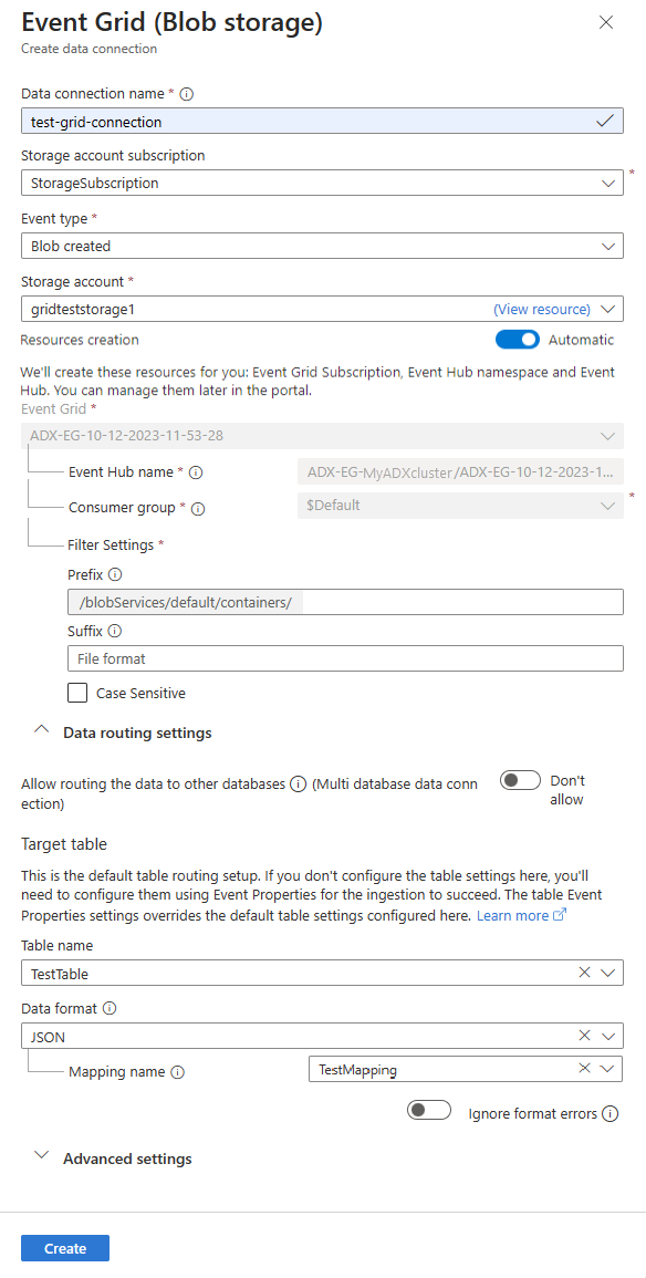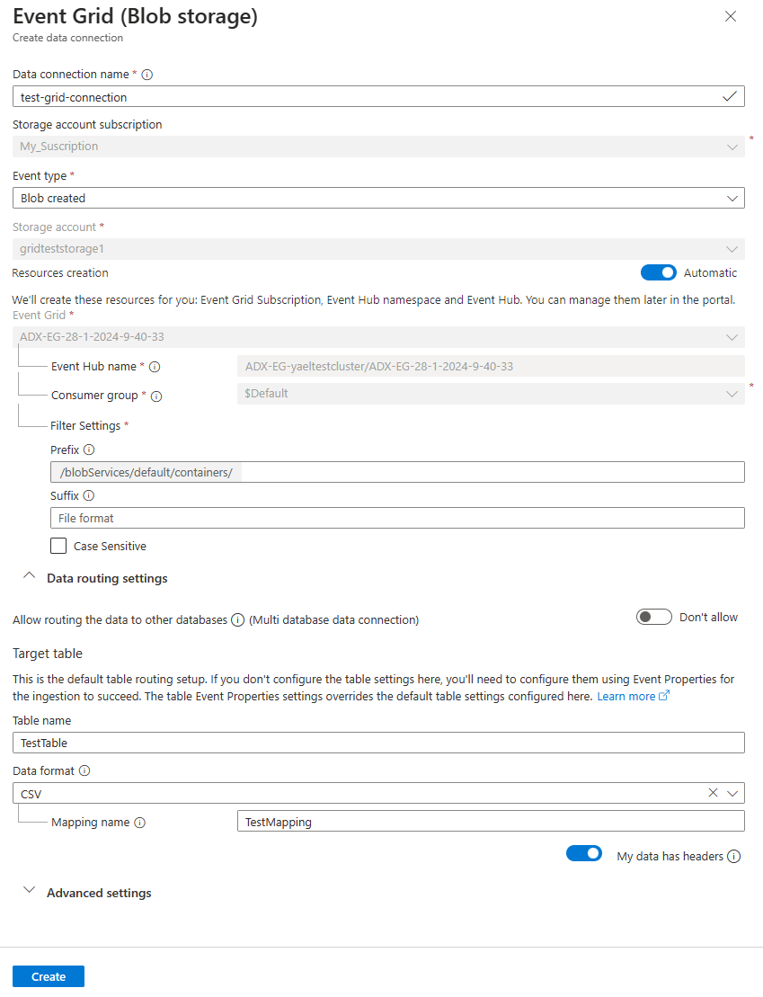 在本部分,你需要在事件网格与 Azure 数据资源管理器表之间建立连接。