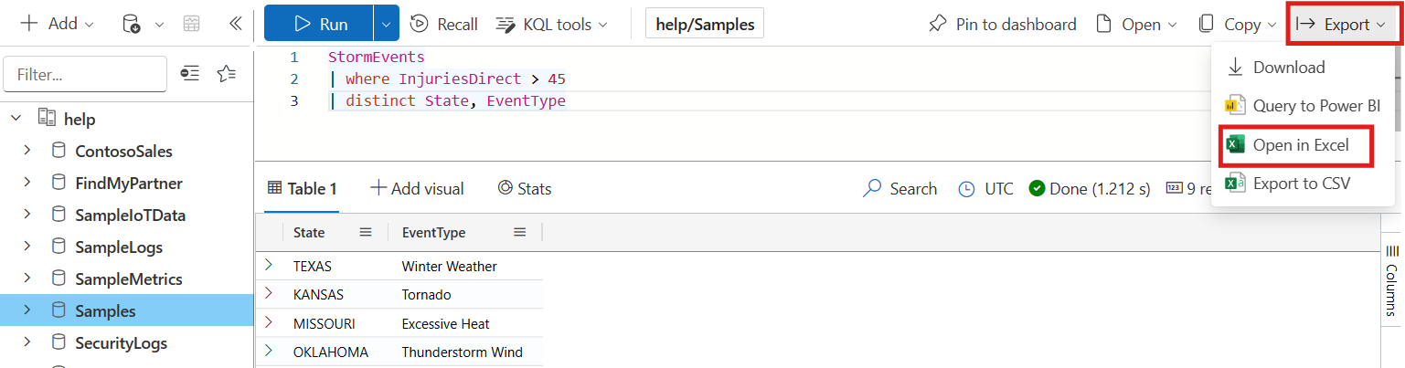 将数据从 Azure 数据资源管理器数据源获取到 Excel 中。