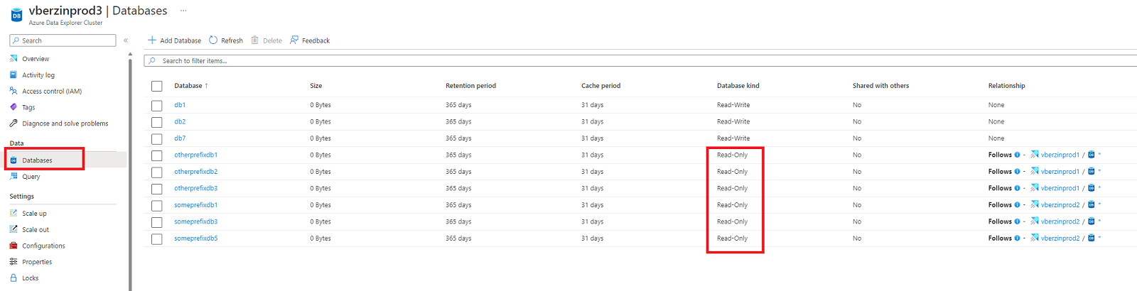 DatabaseName = "<databaseName>", // Can be a specific database name in a leader cluster or * for all databases