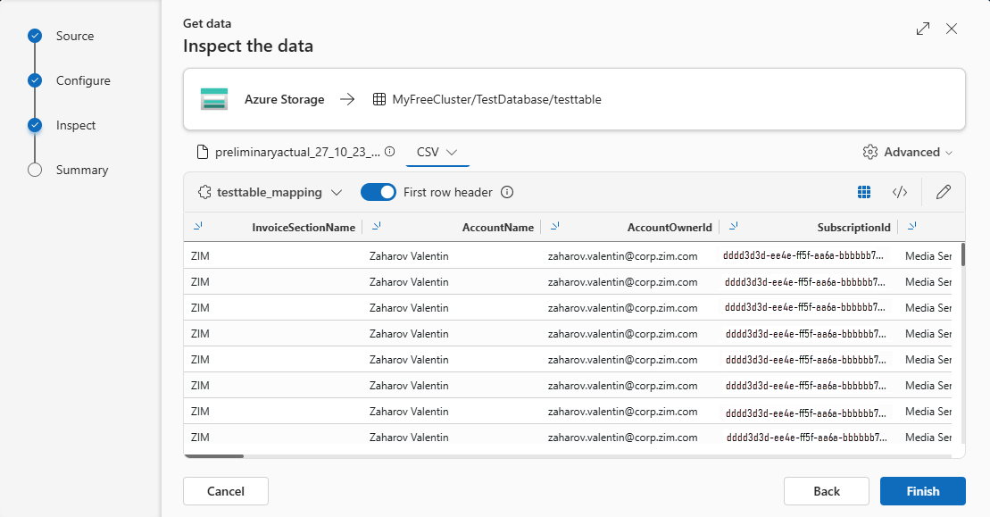 如果要在现有表中引入表格格式,则可以选择“高级”“保留当前表架构”>。 表格数据不一定要包括用于将源数据映射到现有列的列名称。 选中此选项后,映射将按顺序完成,表架构保持不变。 如果未选中此选项,无论数据结构如何,都为传入的数据创建新列。