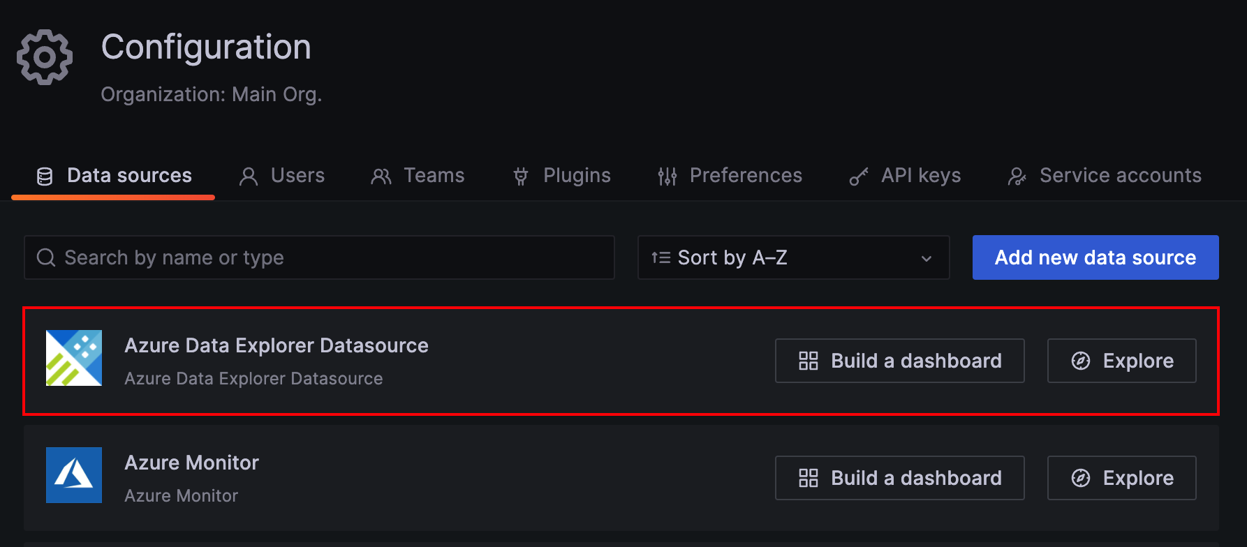 若要将 Azure 数据资源管理器配置为数据源,请遵循 Grafana 环境的相关步骤。
