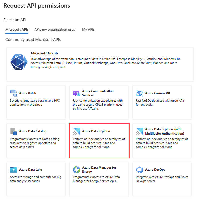 搜索并选择“Azure 数据资源管理器”。