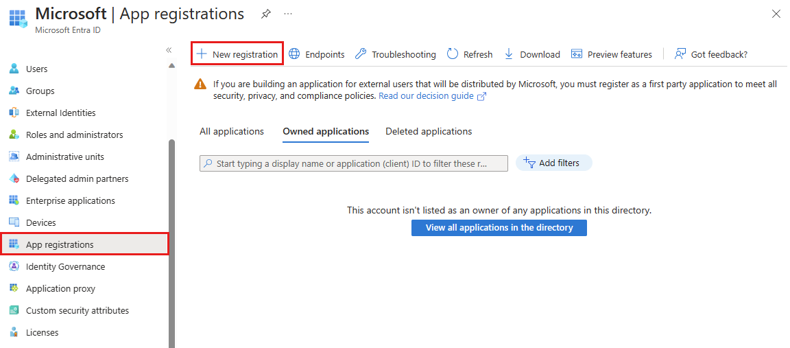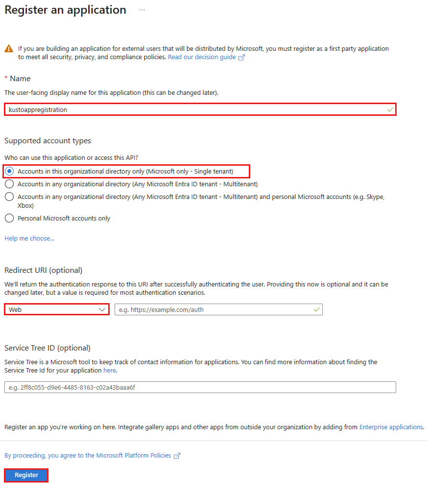 Microsoft Entra 应用程序身份验证要求创建应用程序并将其注册到 Microsoft Entra ID。 在 Microsoft Entra 租户中创建应用程序注册时,会自动创建服务主体。