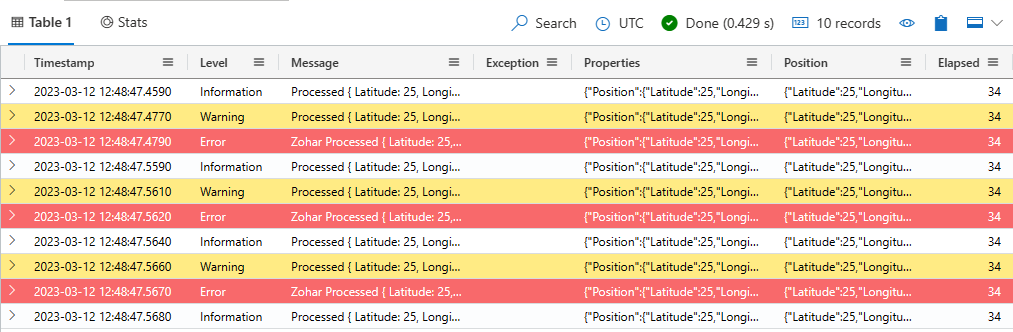 .create table <TableName> (Timestamp: datetime, Level: string, Message: string, Exception: string, Properties: dynamic, Position: dynamic, Elapsed: int)运行以下创建引入映射命令,将占位符 TableName 替换为目标表名称,将 TableNameMapping 替换为引入映射的名称: