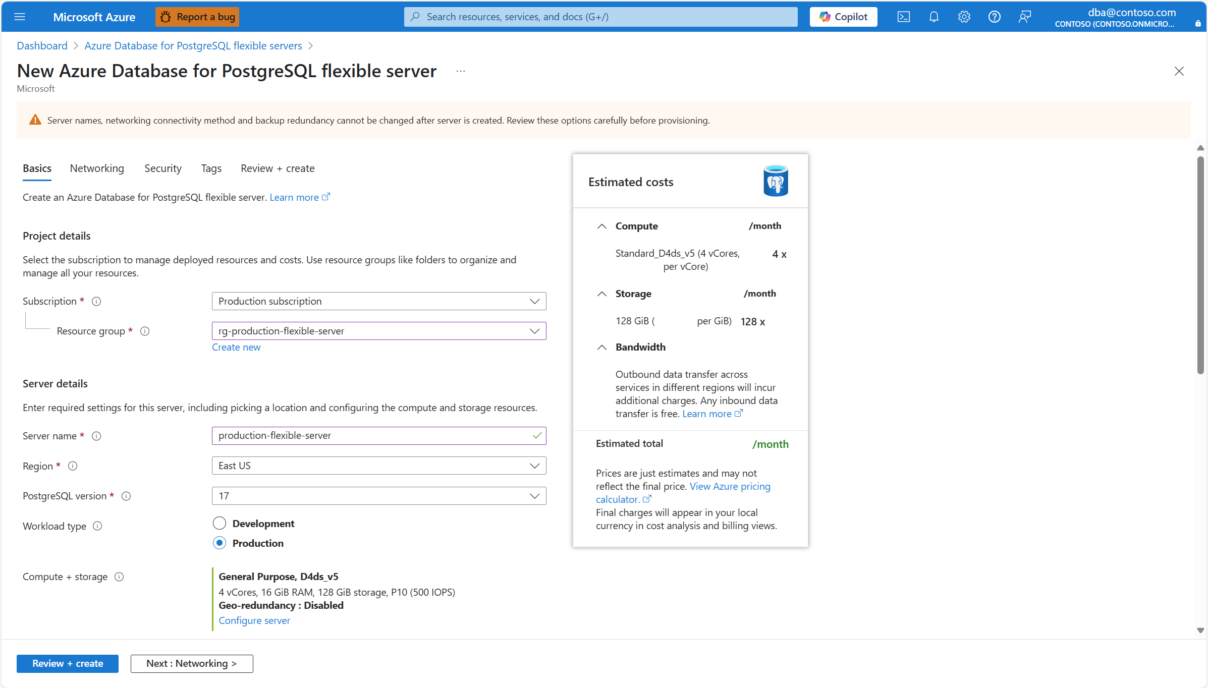 工作负荷类型 默认 SKU 选择。 可以选择 Development(可突发 SKU)、Production(默认为常规用途或内存优化 SKU)。 可以选择“配置服务器”进一步自定义 SKU 和存储 该服务提供内置功能,可将实例的当前主要版本升级到该功能支持的任何其他更高版本。 有关详细信息,请参阅主要版本升级