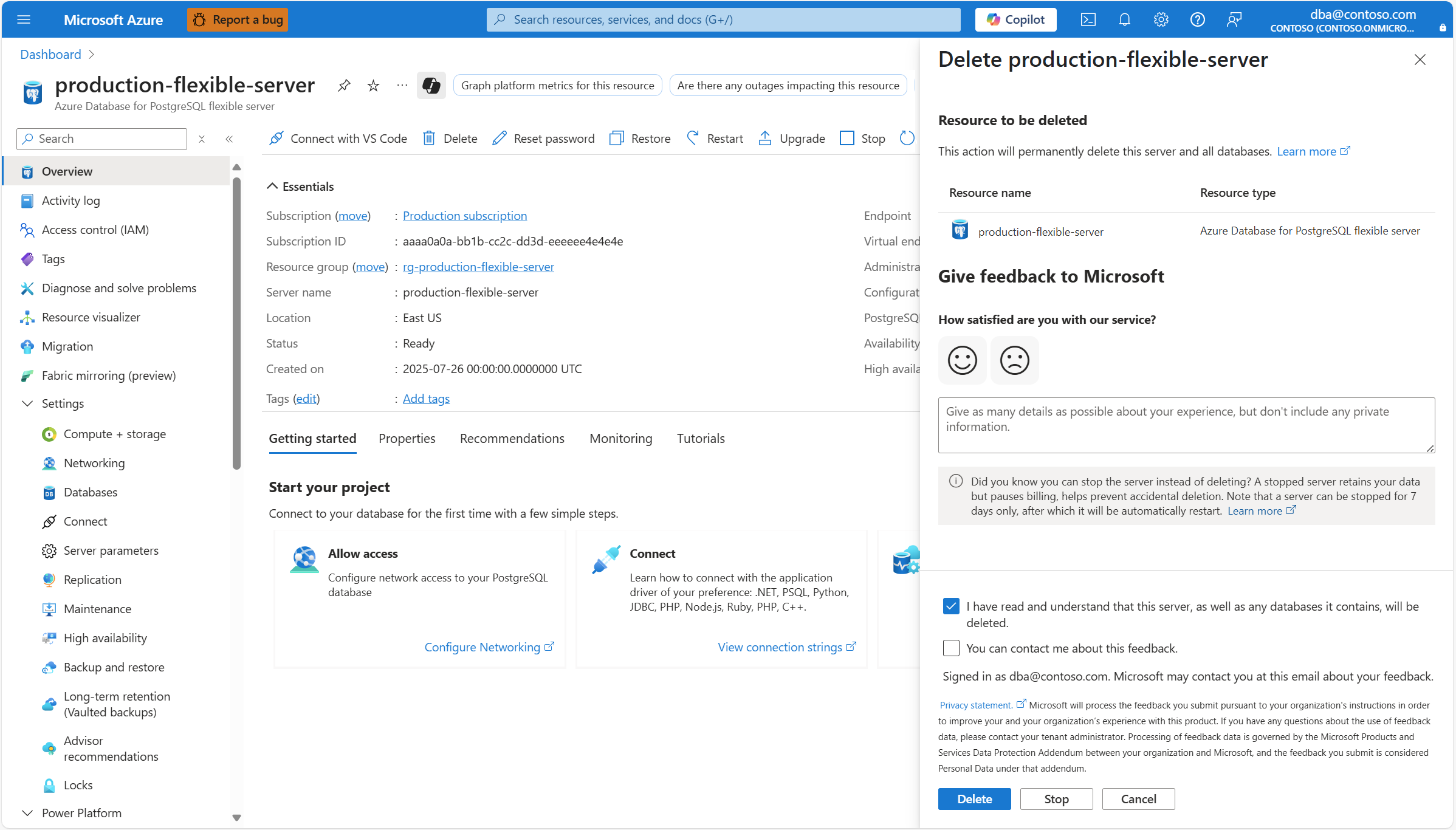 可以通过两种方法之一清理在快速入门中创建的资源。 可以删除 Azure 资源组,其中包括资源组中的所有资源。 如果要使部署在同一资源组中的其他资源保持不变,可以仅删除 Azure Database for PostgreSQL 灵活服务器实例。
