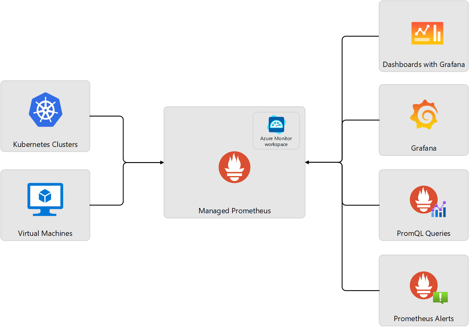 适用于 Prometheus 的 Azure Monitor 托管服务为运行 Prometheus 提供了完全托管且可缩放的环境。 它简化了在 AKS 和已启用 Azure Arc 的 Kubernetes 中部署、管理和扩展 Prometheus,从而可以专注于监控应用程序和基础设施。 作为完全托管服务,它提供高可用性、服务级别协议(SLA)保证、自动软件更新和高度可缩放的指标存储,可保留最多 18 个月的数据。