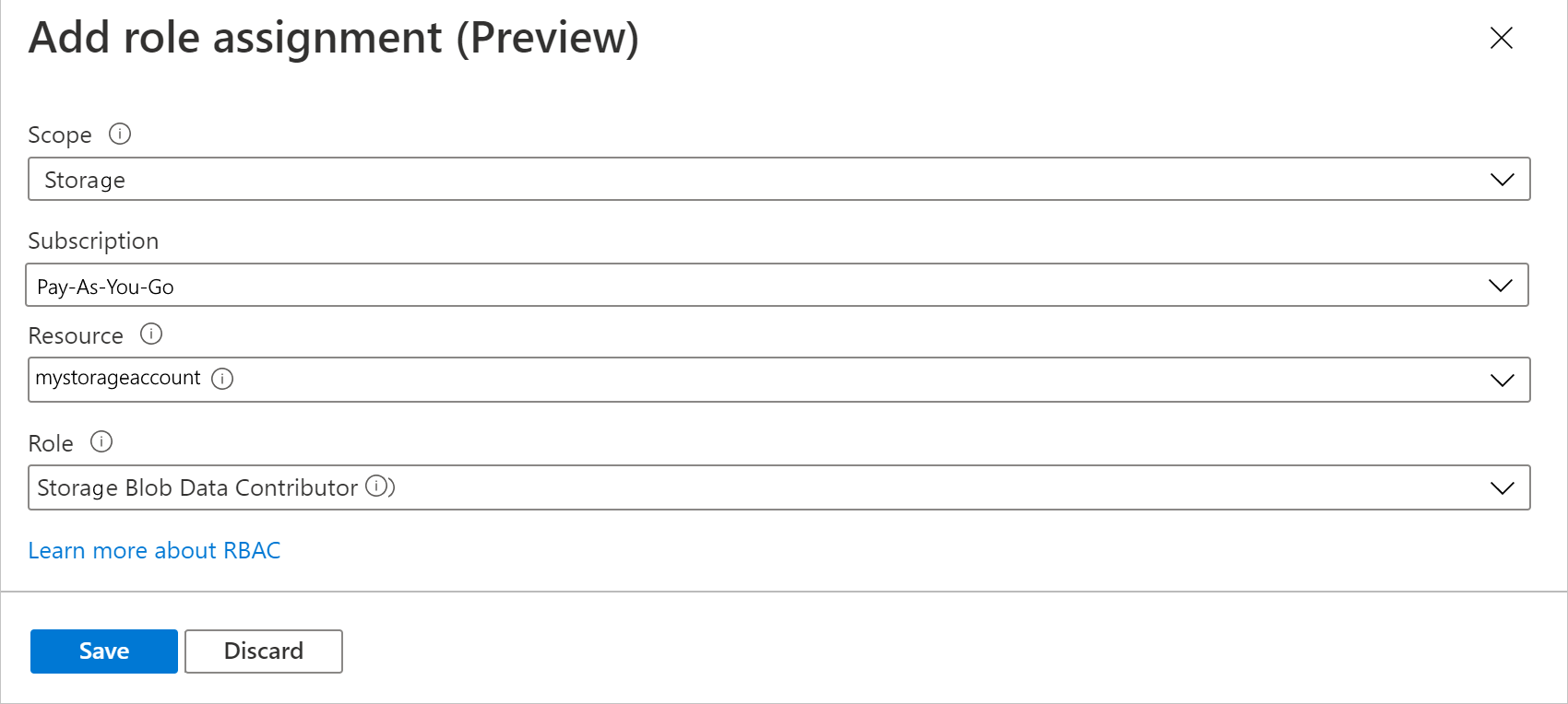 若要设置异常和托管标识支持,请先为存储帐户配置适当访问权限: