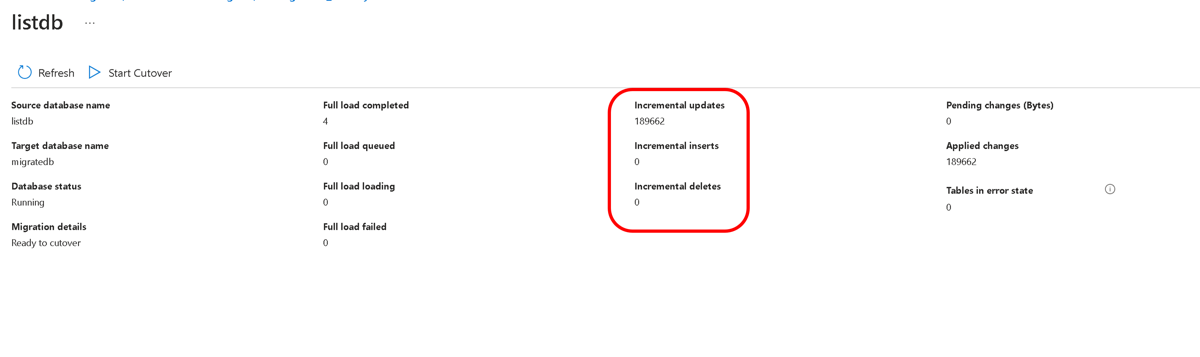 “完整数据加载”会显示初始加载迁移状态,而“增量数据同步”则会显示变更数据捕获 (CDC) 状态。