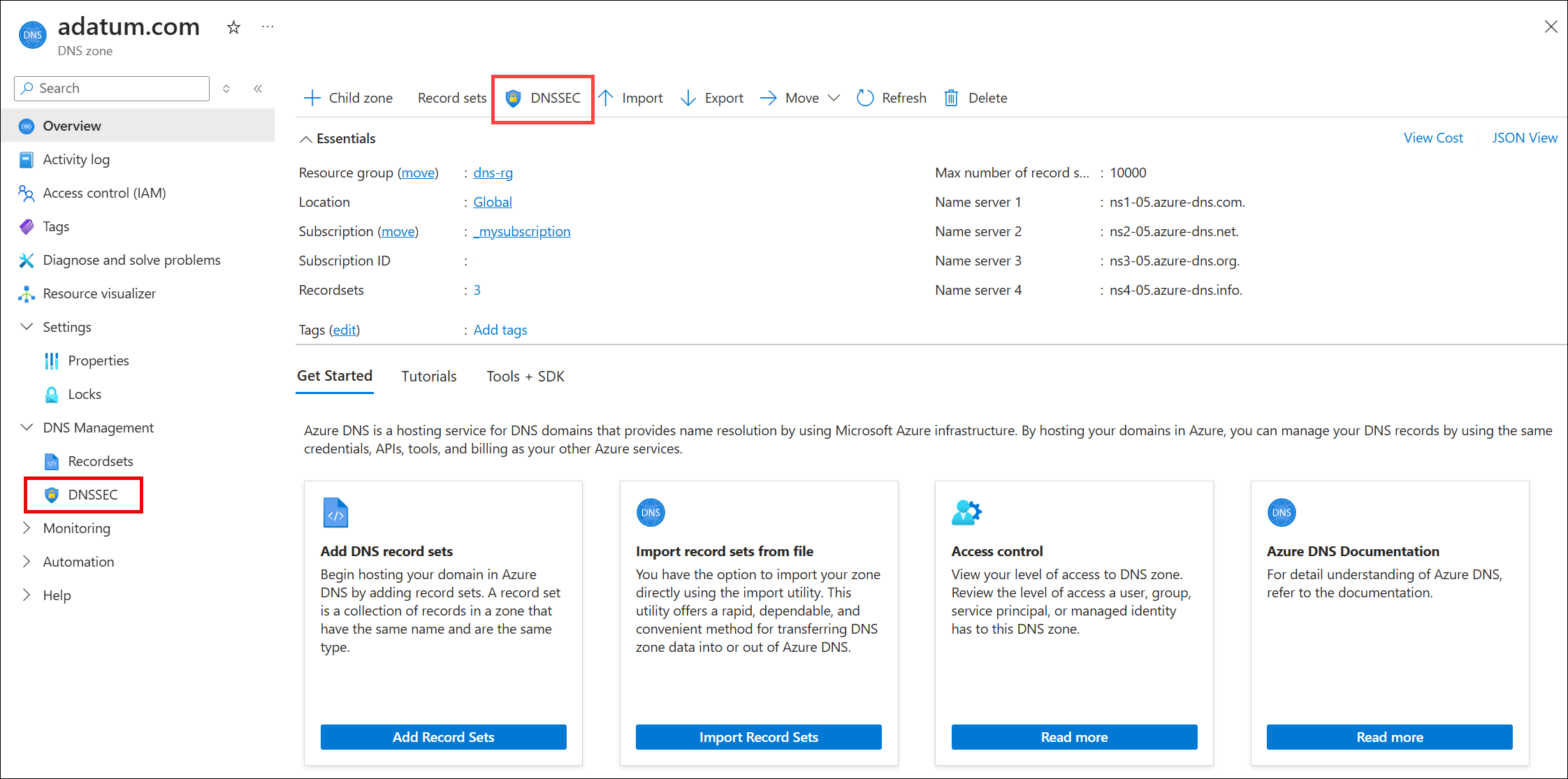 Get-AzDnsDnssecConfig -ResourceGroupName "your-resource-group" -ZoneName "adatum.com"
