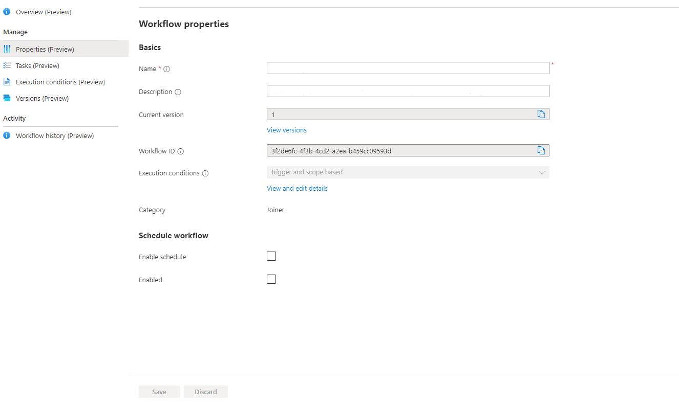 你将在要更新的工作流的 Properties 节的Microsoft Entra管理中心中找到这些相应的参数。