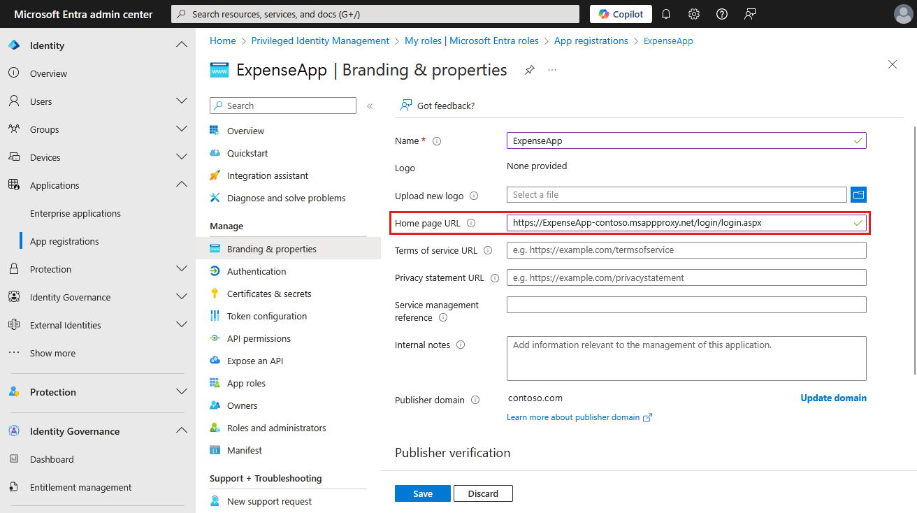 https://apps.contoso.com/app1/,则配置的主页 URL 必须以开头https://apps.contoso.com/app1/。如果对已发布的应用进行更改,更改可能会重置主页 URL 的值。 将来更新应用时,应重新检查并在必要时更新主页 URL。