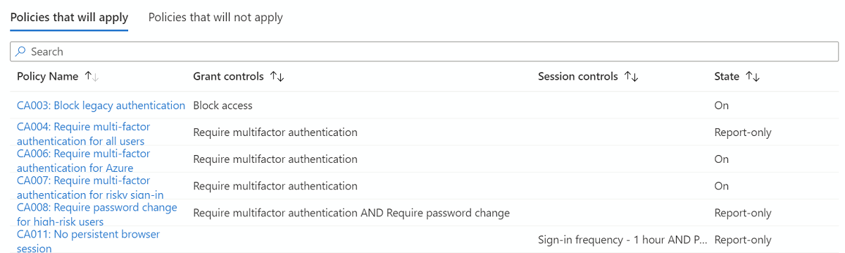 完成评估后,此工具将生成一份受影响策略的报表。 若要收集有关条件访问策略的详细信息,请使用 条件访问按策略报告 或 条件访问见解和报告工作簿 ,了解有关仅报告模式或当前启用的策略的详细信息。