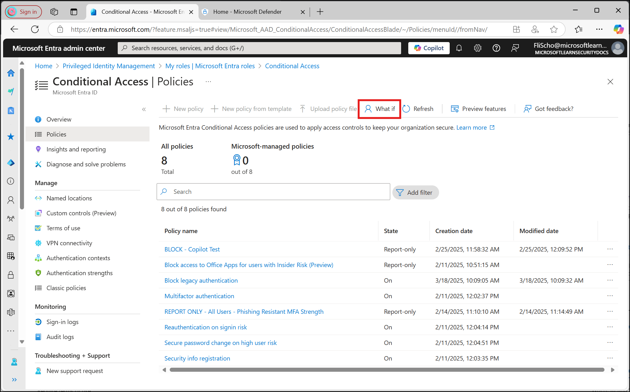 可以在 Microsoft Entra 管理中心>>>> 中找到 What If 工具。
