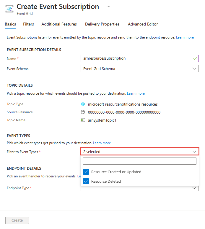 --included-event-types Microsoft.ResourceNotifications.Resources.CreatedOrUpdated, Microsoft.ResourceNotifications.Resources.Deleted \