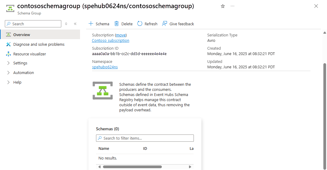 - 请确保你是其中一个角色的成员: 所有者、 参与者或 架构注册表参与者。 有关详细信息,请参阅 Azure 基于角色的访问控制。