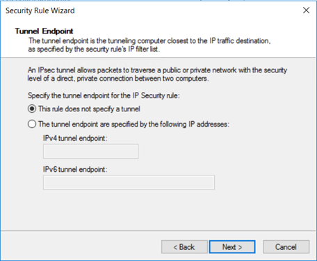 选择“此规则不指定隧道”,然后选择“下一步” 。