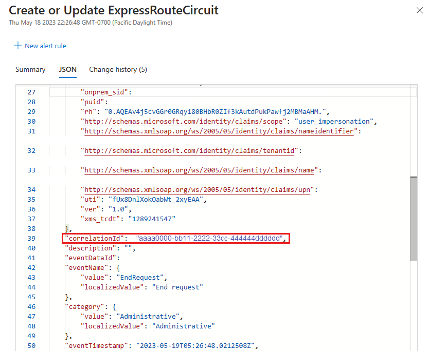 Azure 资源管理器活动日志提供有关资源修改的信息,并帮助跟踪服务之间的请求流。 每个操作都有一个独特的相关 ID,通过跨多个服务将它们关联到其他信号,从而帮助解决问题。 本指南将介绍如何从 ExpressRoute 资源(例如线路、网关、连接或对等互连)的活动日志中获取相关 ID。