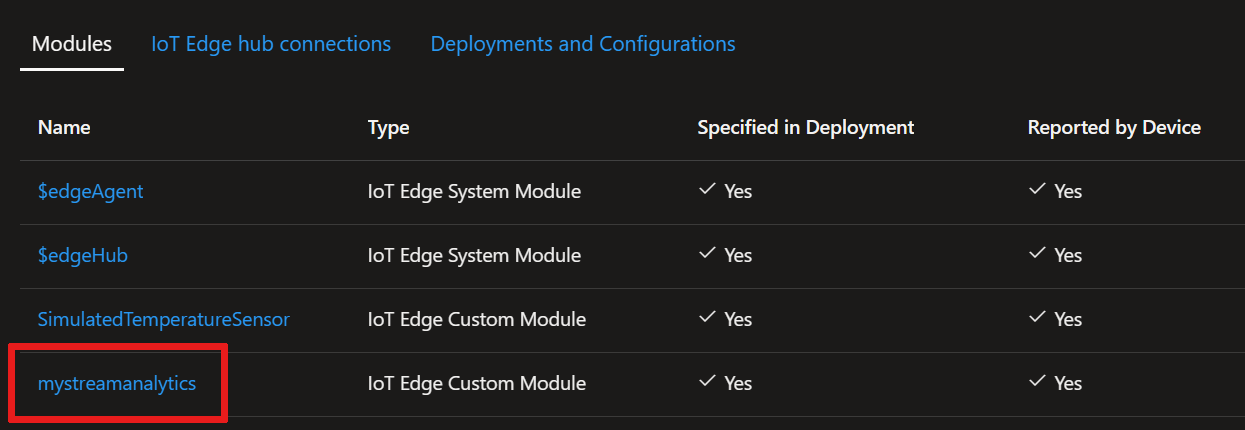 在流分析添加完成部署后,确认两个新模块显示在“设置模块”页上。