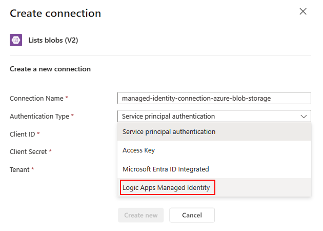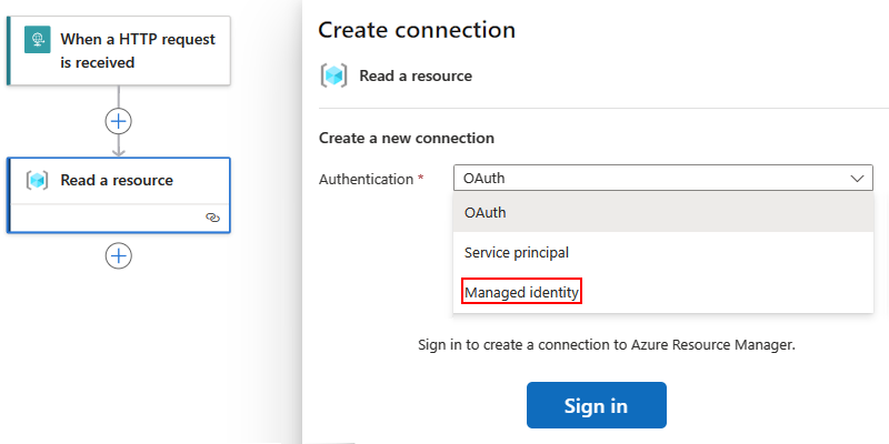在Azure 逻辑应用中,许多连接器都支持这两种托管标识类型: